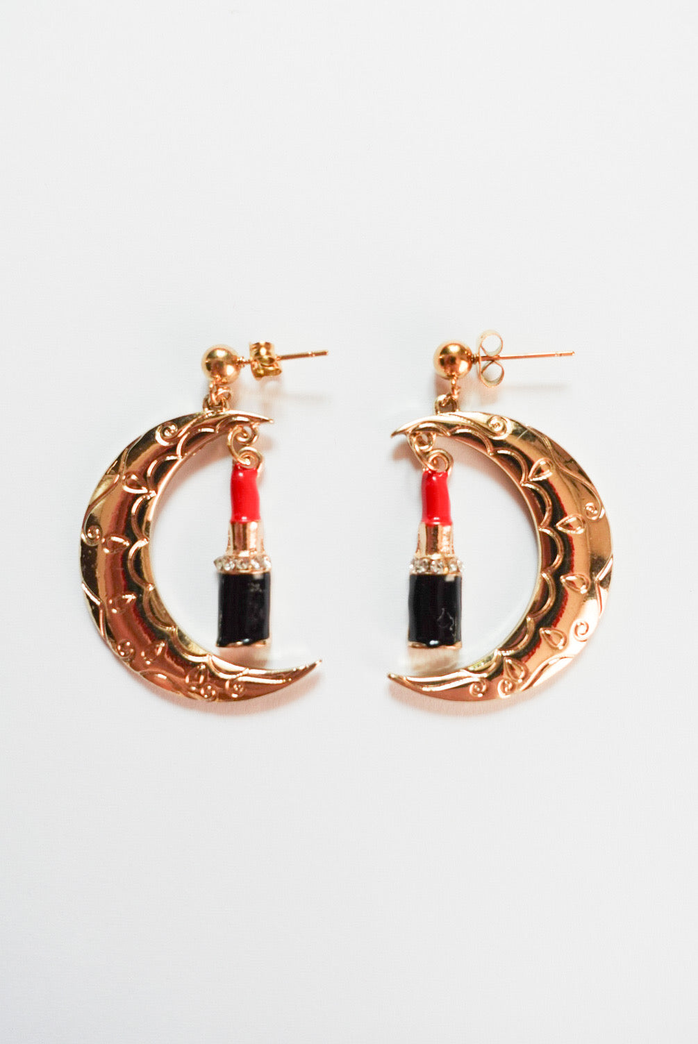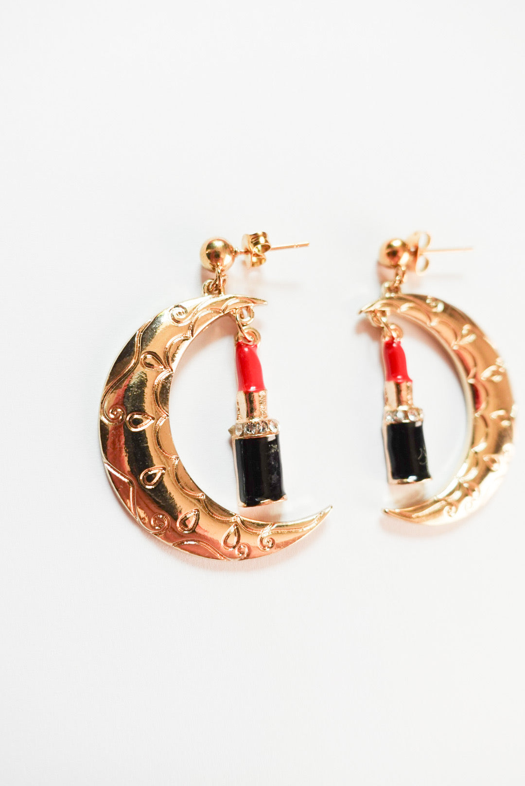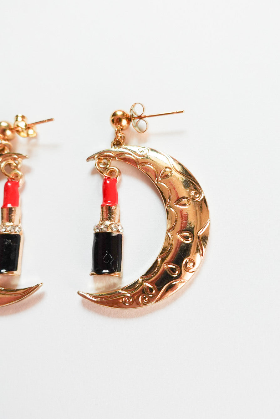 大胆でユニークなデザインが目を引く「ムーン×リップスティックピアス」。