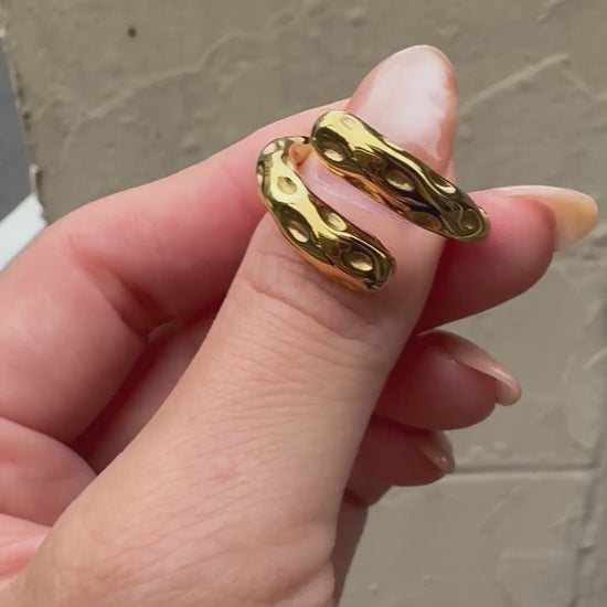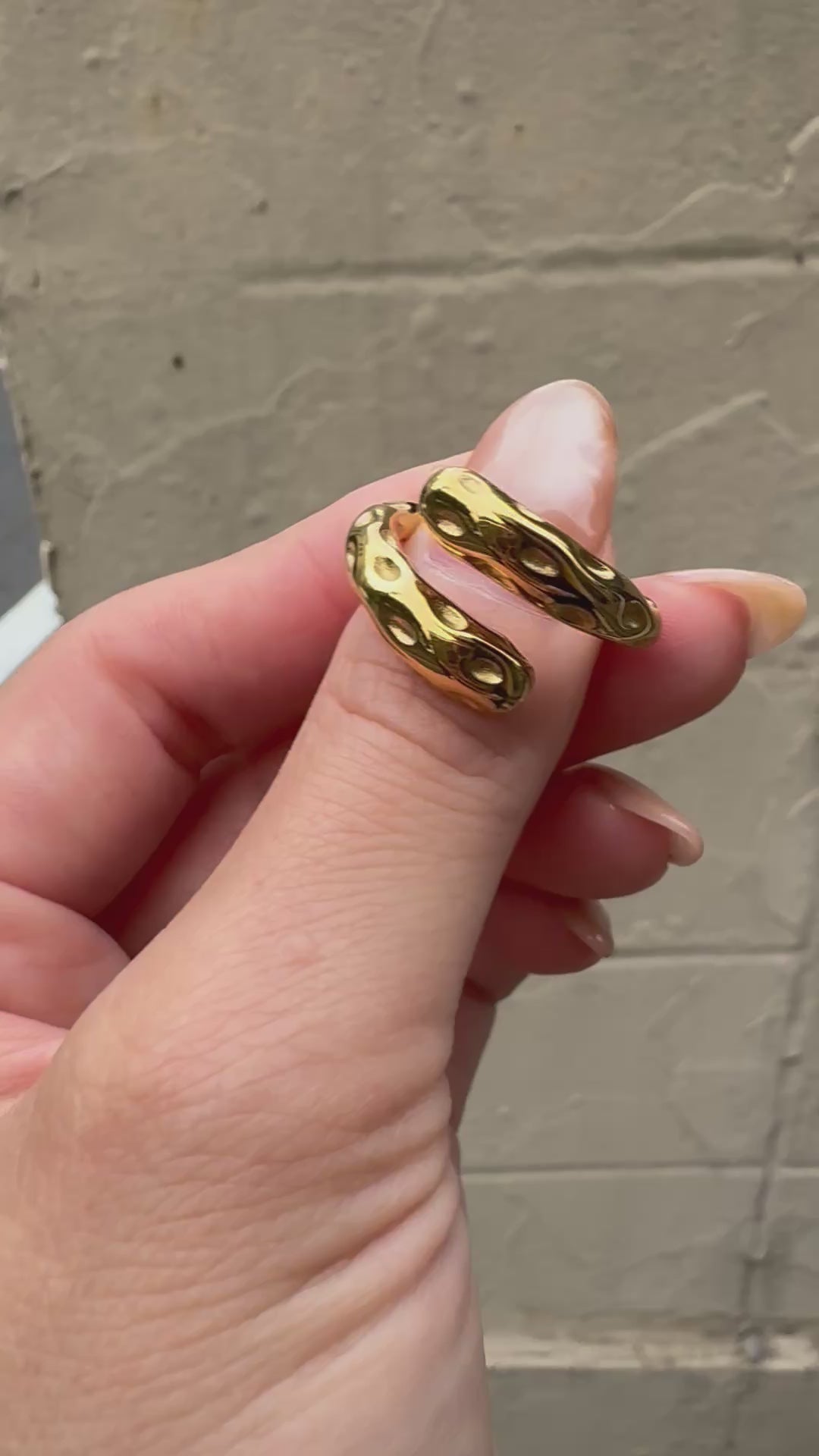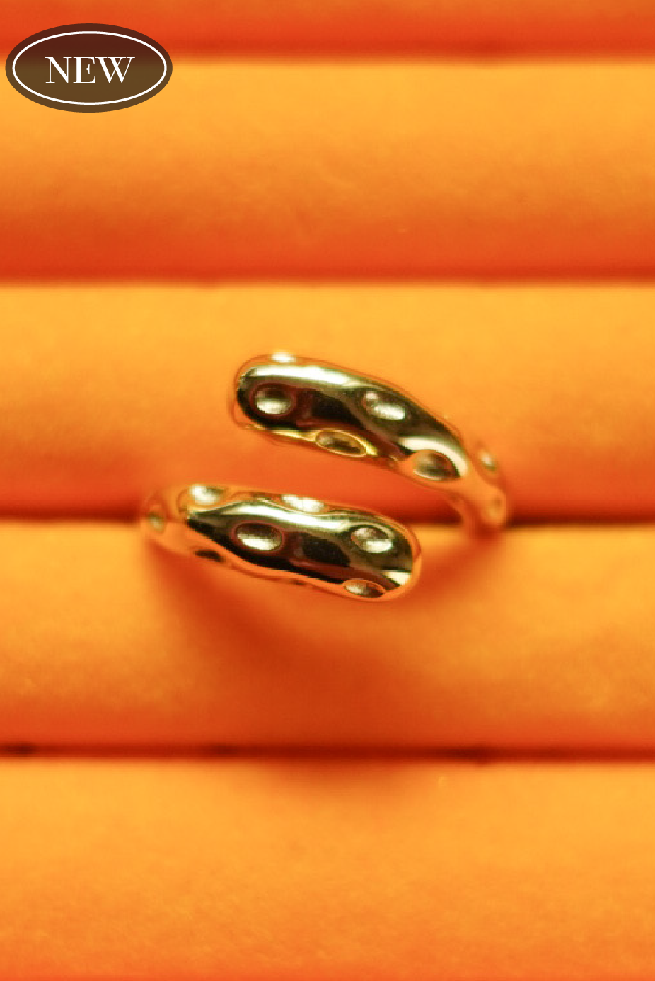 まるで溶けかけのゴールドが指先にとろけたような、ユニークなデザインが目を惹く「MELTY GOLD リング」。有機的なフォルムに不規則な凹凸が施され、シンプルながらもアートのような存在感を放ちます。