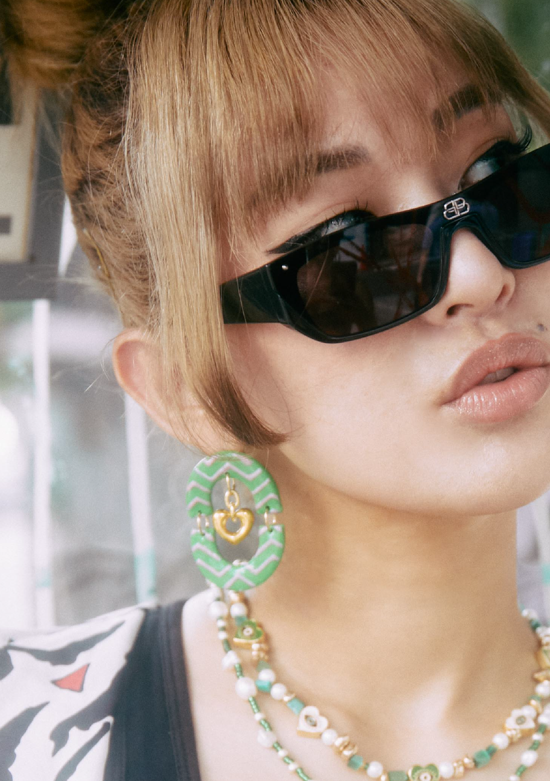 シンプルなコーデにプラスするだけで一気に旬顔に仕上げてくれるアイキャッチなアイテム。