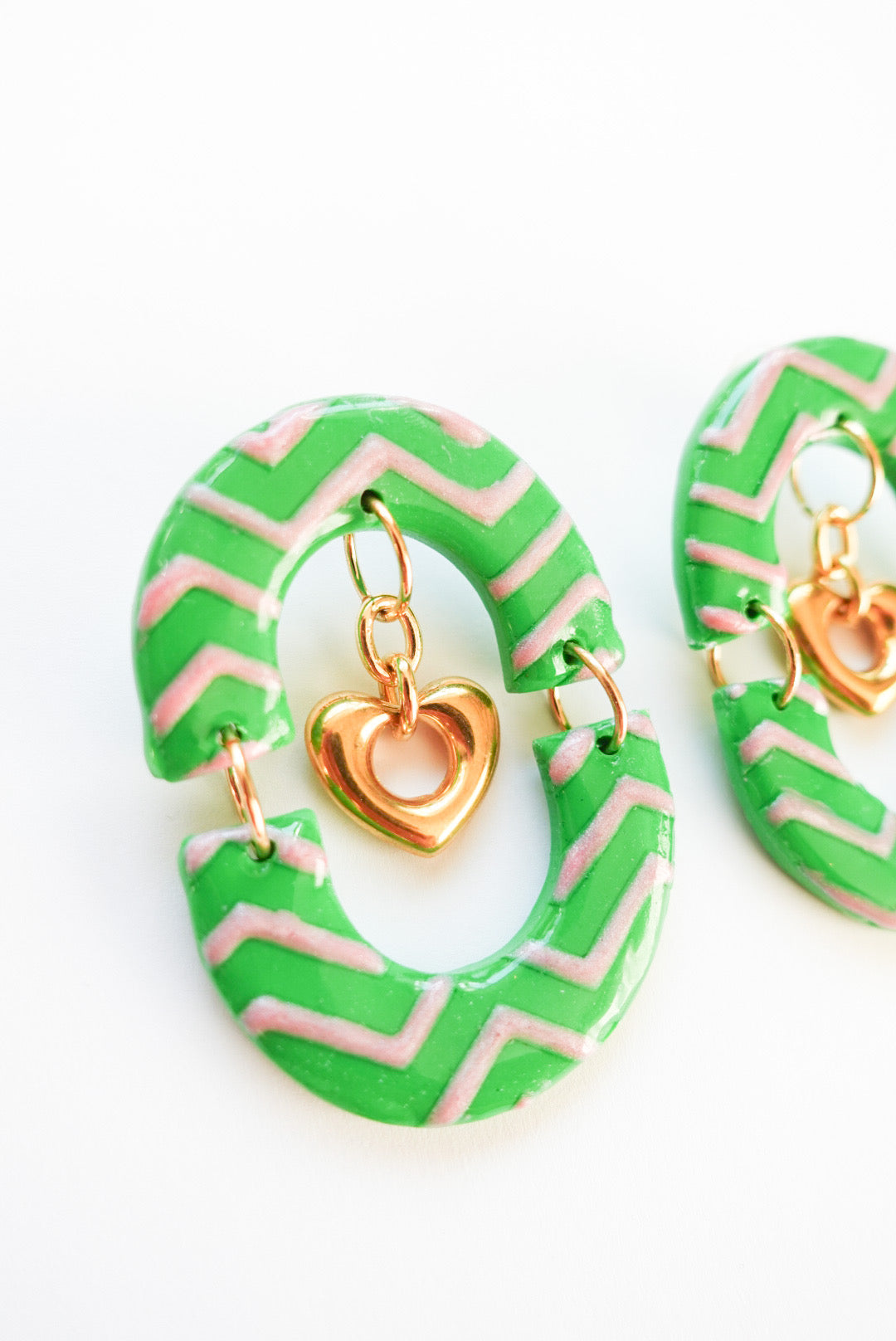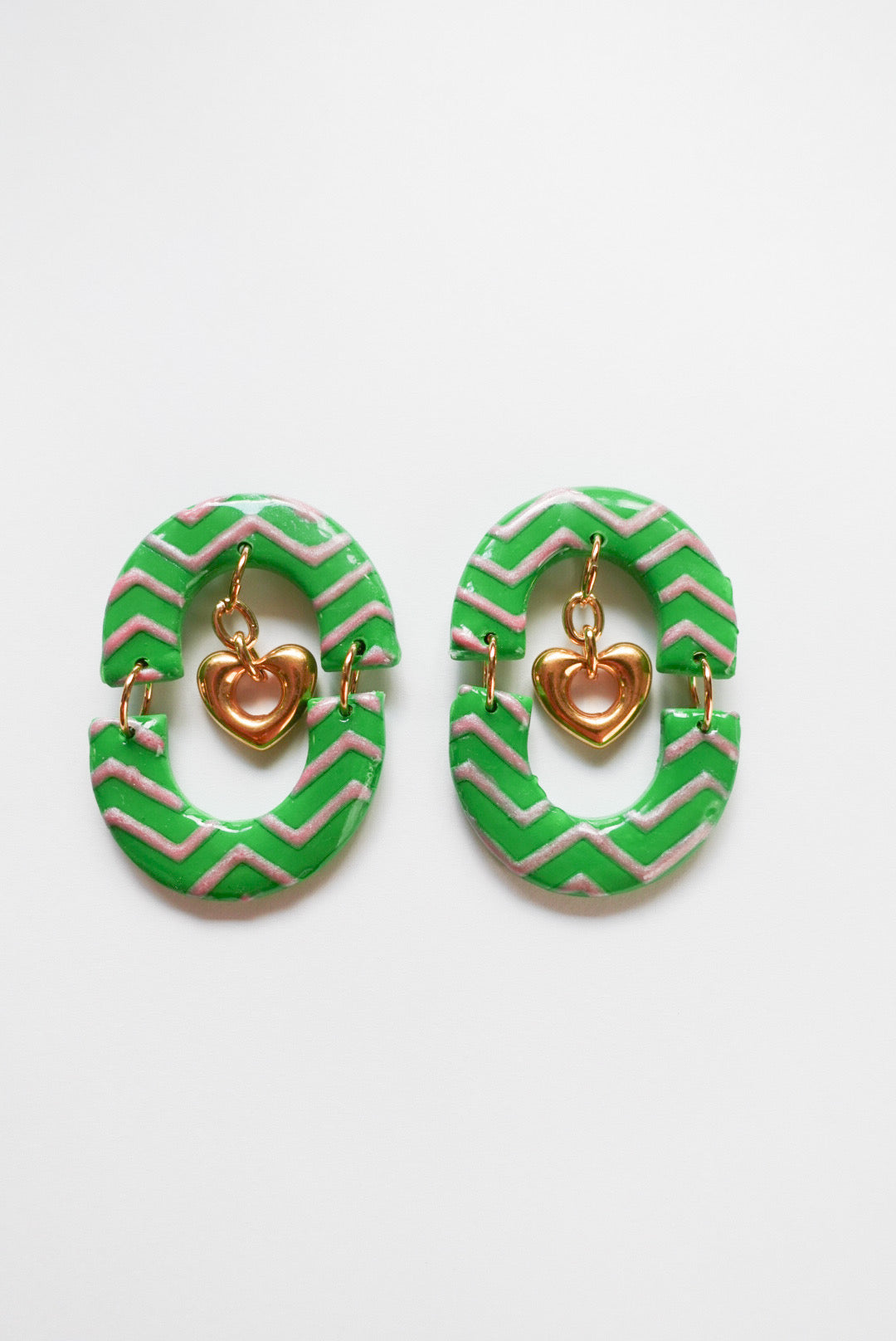 this oval earring swings a shiny gold heart charm at its center, full of character and retro vibes.