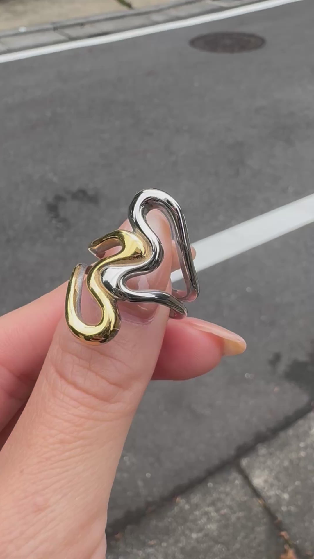 大胆にうねるラインが印象的な、アートピースのようなステートメントリング。