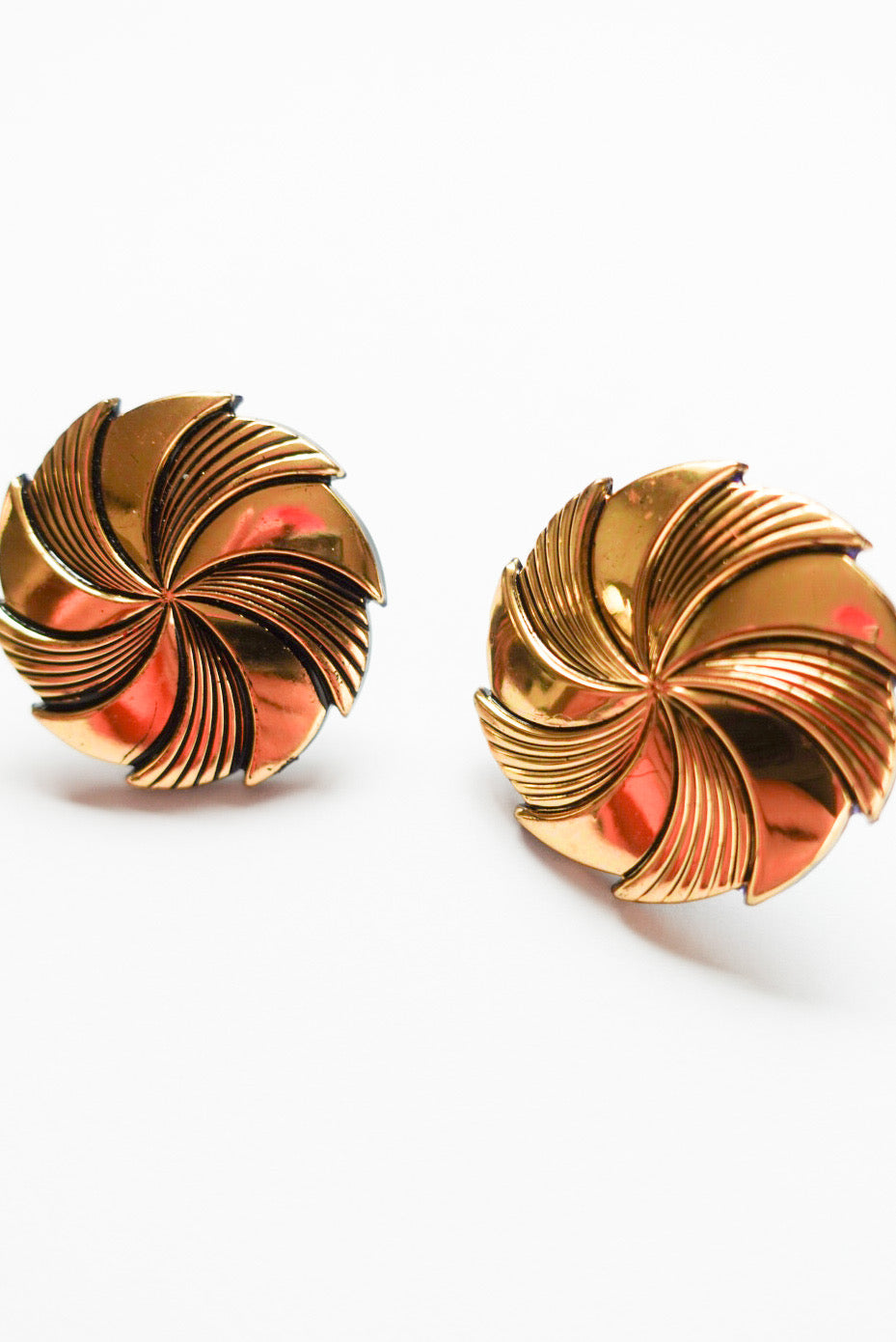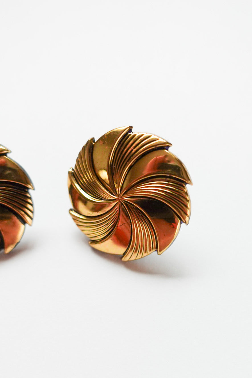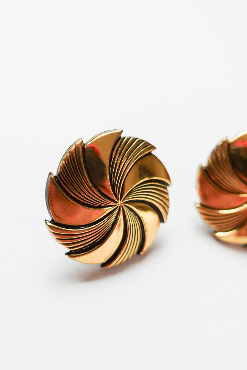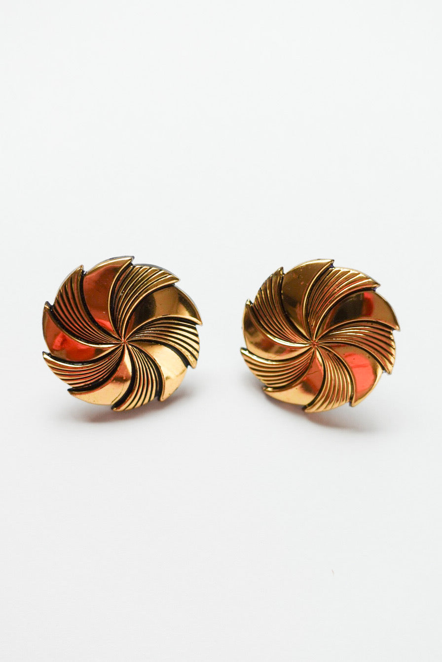 まるで風を巻き起こすような、立体的なスパイラルデザイン。深く刻まれたラインとツヤのあるゴールドの光沢が、クラシカルでありながら近未来的なムードを漂わせます。
