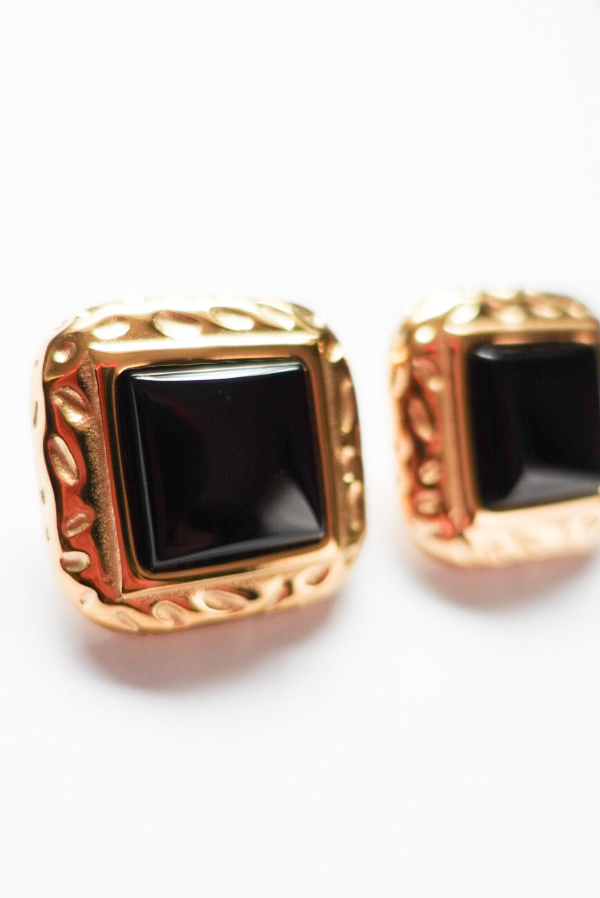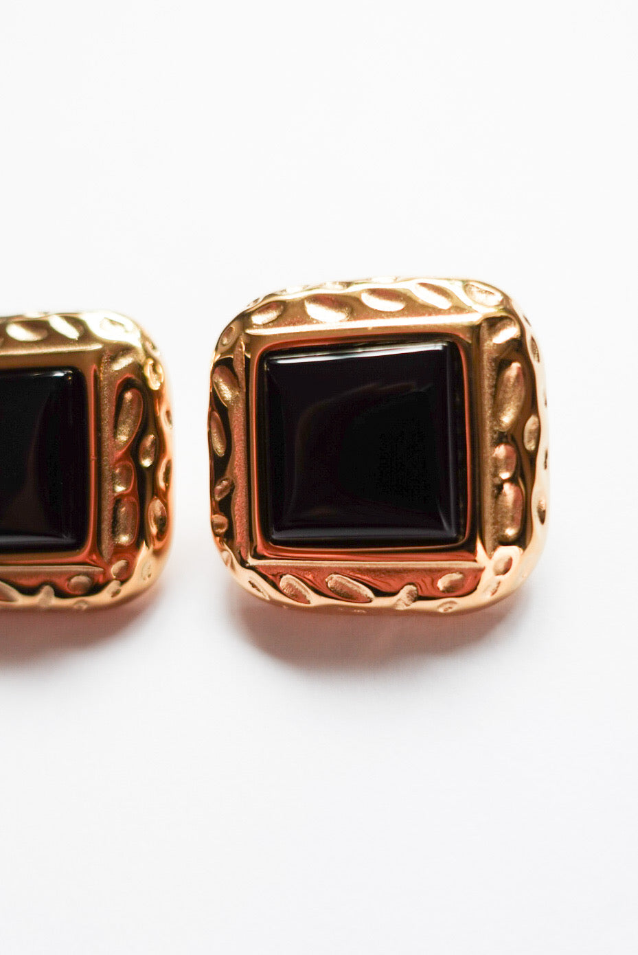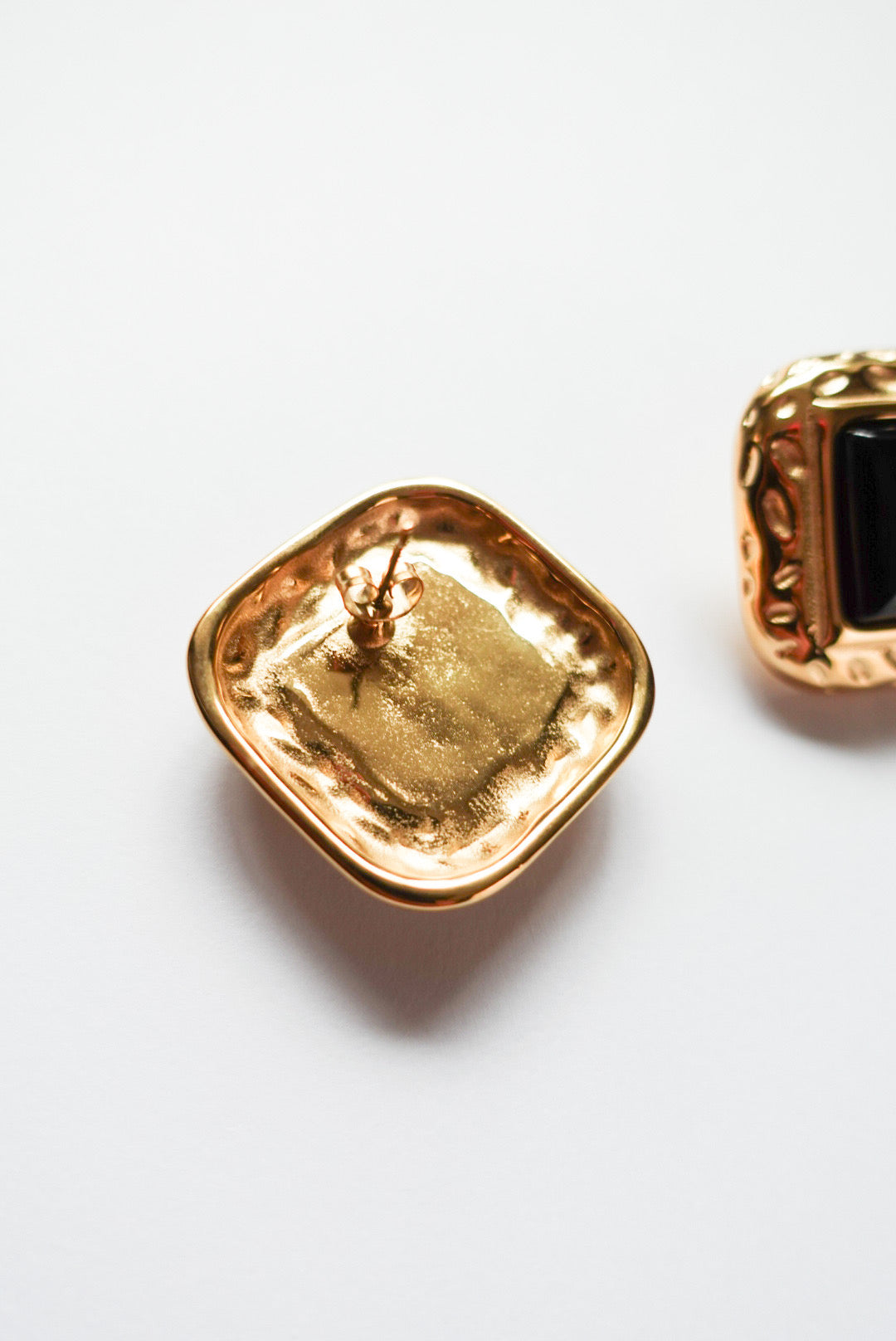 重厚感と気品を兼ね備えた、ゴールド×ブラックのスクエアピアス。