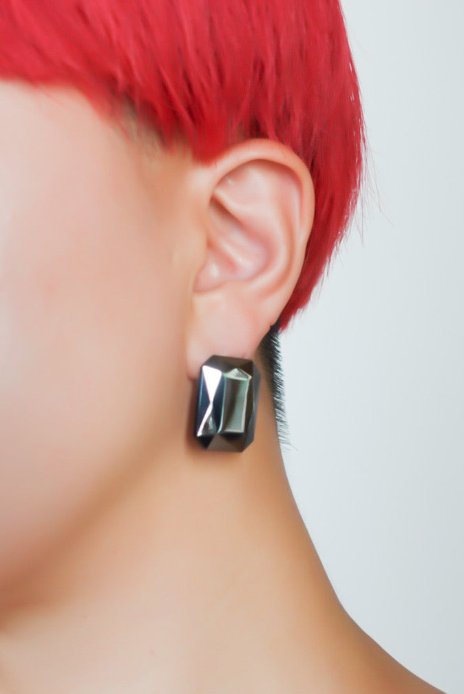 シャープなカッティングとミラーのような輝きが印象的な、メタリックピアスが登場!